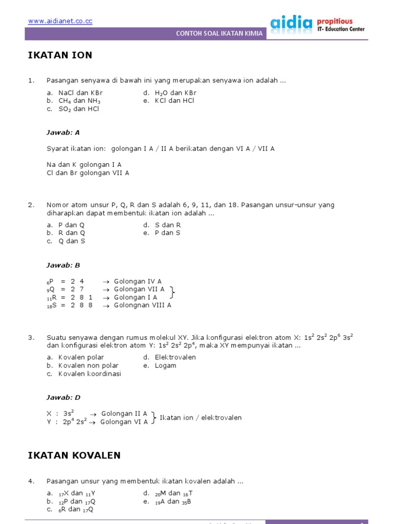 Contoh Soal Ikatan Ion Dan Kovalen Beserta Jawabannya Bagikan Contoh