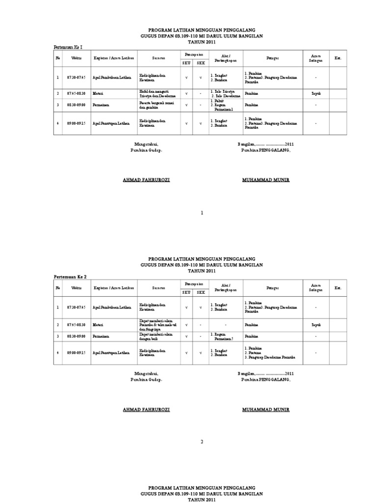 Program latihan mingguan pramuka penggalang. 04040 -041 PANGKALAN SMPN 3 RAMBANG DANGKU PROGRAM LATIHAN MINGGUAN GUGUSMPEPAN. Program Latihan Pramuka Penegak Salam Pramuka Progaram latihan pramuka penegak sangat berfariasi dan bermacam-macam tergantung dari pangkalannya masing -. Satu kali seminggu jadi dalam satu tahun ada 34 kali.